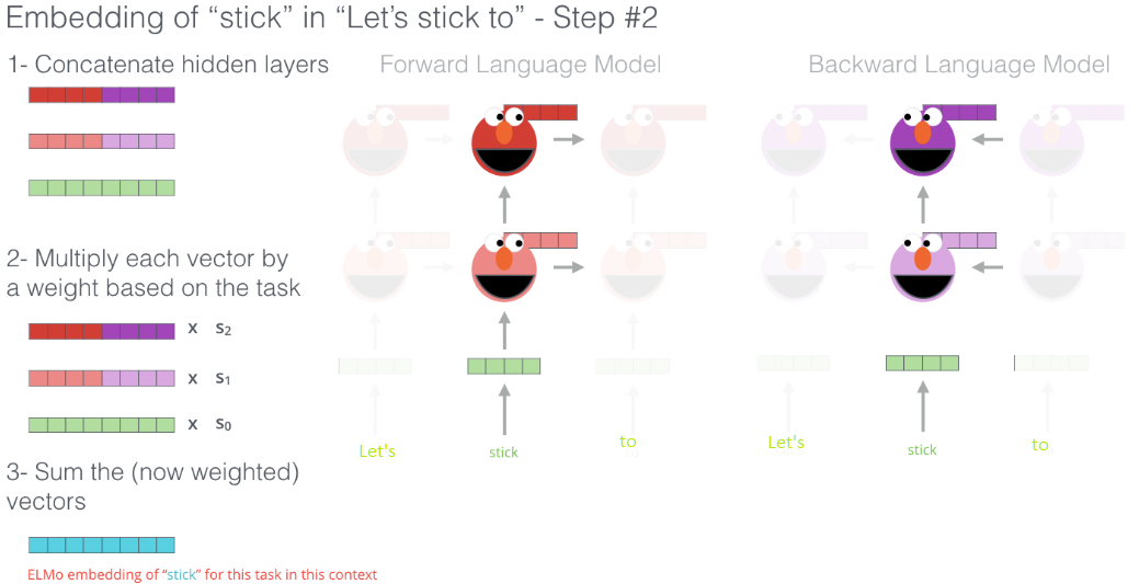 - pretrained on large unsupervised text corpora - predict the next word = dense + softmax layer on top of last LSTM layer output