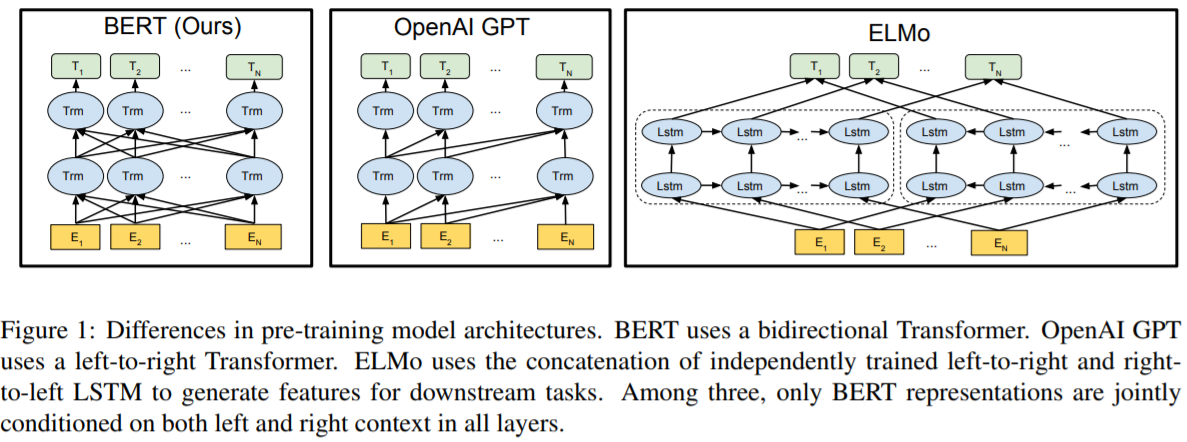 - jointly conditioning on both left and right context in all layers = normal transformer encoder: